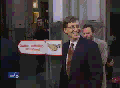 le cadeau d'acceuil a Bill Gates de Noel Godin....